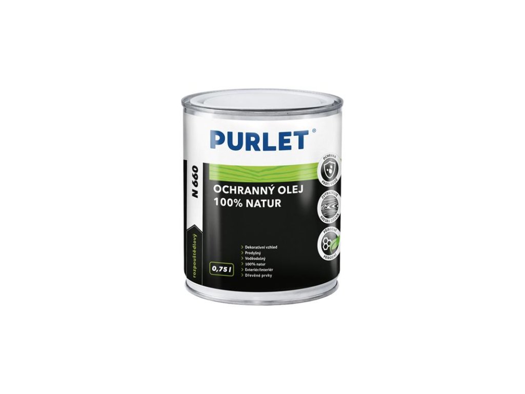 Výrobek na bázi obnovitelných surovin je určen k ochranným nátěrům všech typů dřeva včetně tropických dřevin, a to jak v interiérech, tak v exteriérech. PURLET N 660 propůjčuje dřevu vysoce dekorativní vzhled, odpuzuje vodu a povrch zůstává prodyšný. PURLET N 660 se vyznačuje vynikající penetrační schopností a snadnou obnovitelností nátěru.